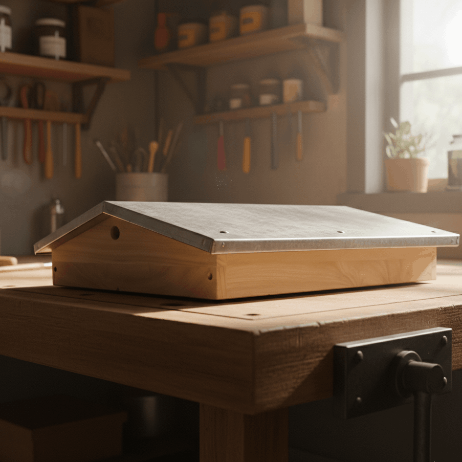 massiv und aus astfreiem Holz. Mit verzinkter Blechhaube, umlaufendem Dachüberstand. Besonderheit: Die Blechabdeckung ist aus einem Stück hergestellt und nicht durch eine Mittelnaht durchtrennt. Außenmaß 50 x 50 cm, Höhe 13 cm, Gewicht 3,8 kg