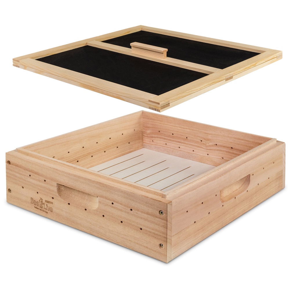 • Verbesserte Luftfeuchtigkeit: die im Bienenstock entstehende Feuchtigkeit wird durch die spezielle Membran-Abdeckung nach oben abgeleitet