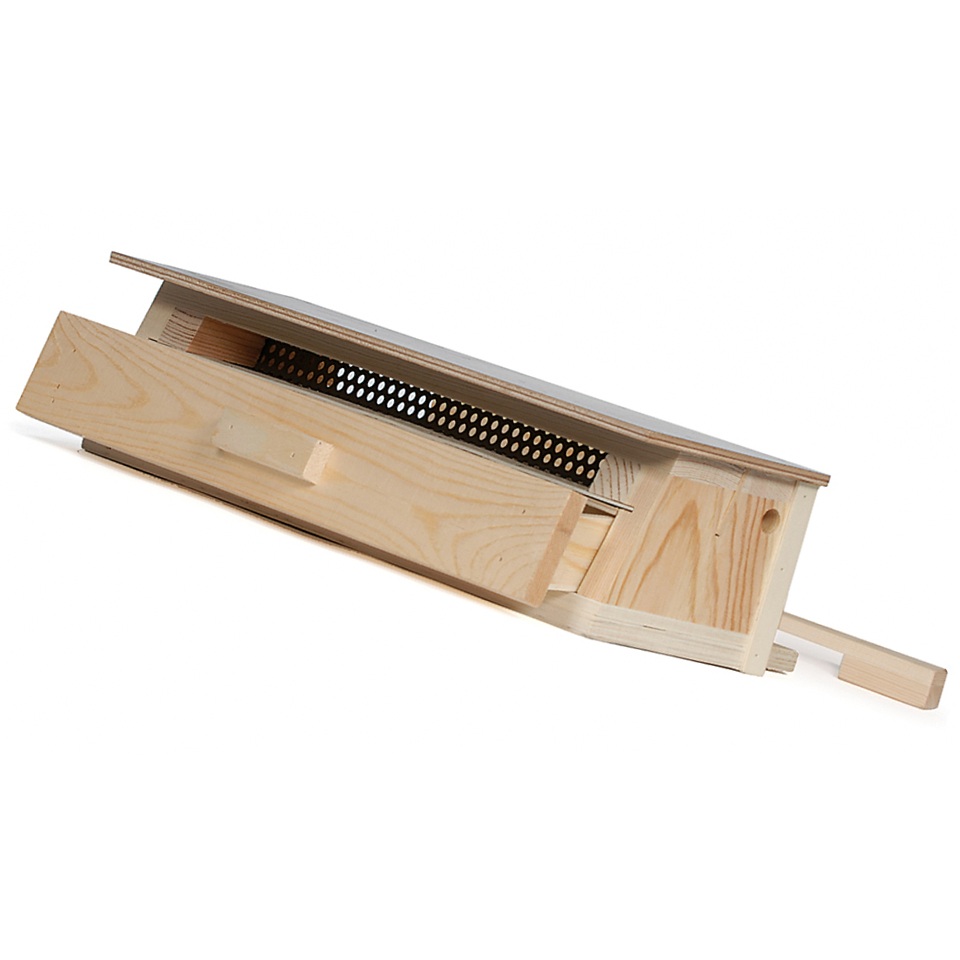 Fluglochvorsatz mit Pollenschale und seitlich herausziehbarem Rundlochkamm.