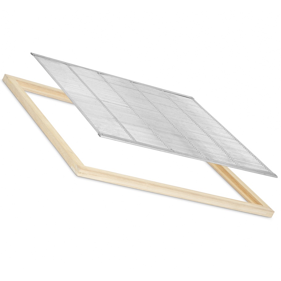 eingelegt in einem eckverzinktem Holzrahmen,