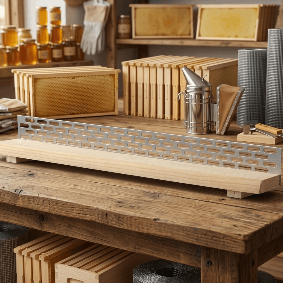 Die Velutina-Sperren sind wie eine letzte Verteidigungslinie um das Eindringen der Asiatischen Hornisse in den Bienenkasten zu verhindern. Dafür ist der Lochdurchmesser von 5,5 mm und eine exakte Ausführung der Bohrungen notwendig. Aufgrund dessen können die Bienen einen Teil des Blütenpollens beim Hindurchschlüpfen verlieren, weshalb wir regelmäßige Kontrollen empfehlen.