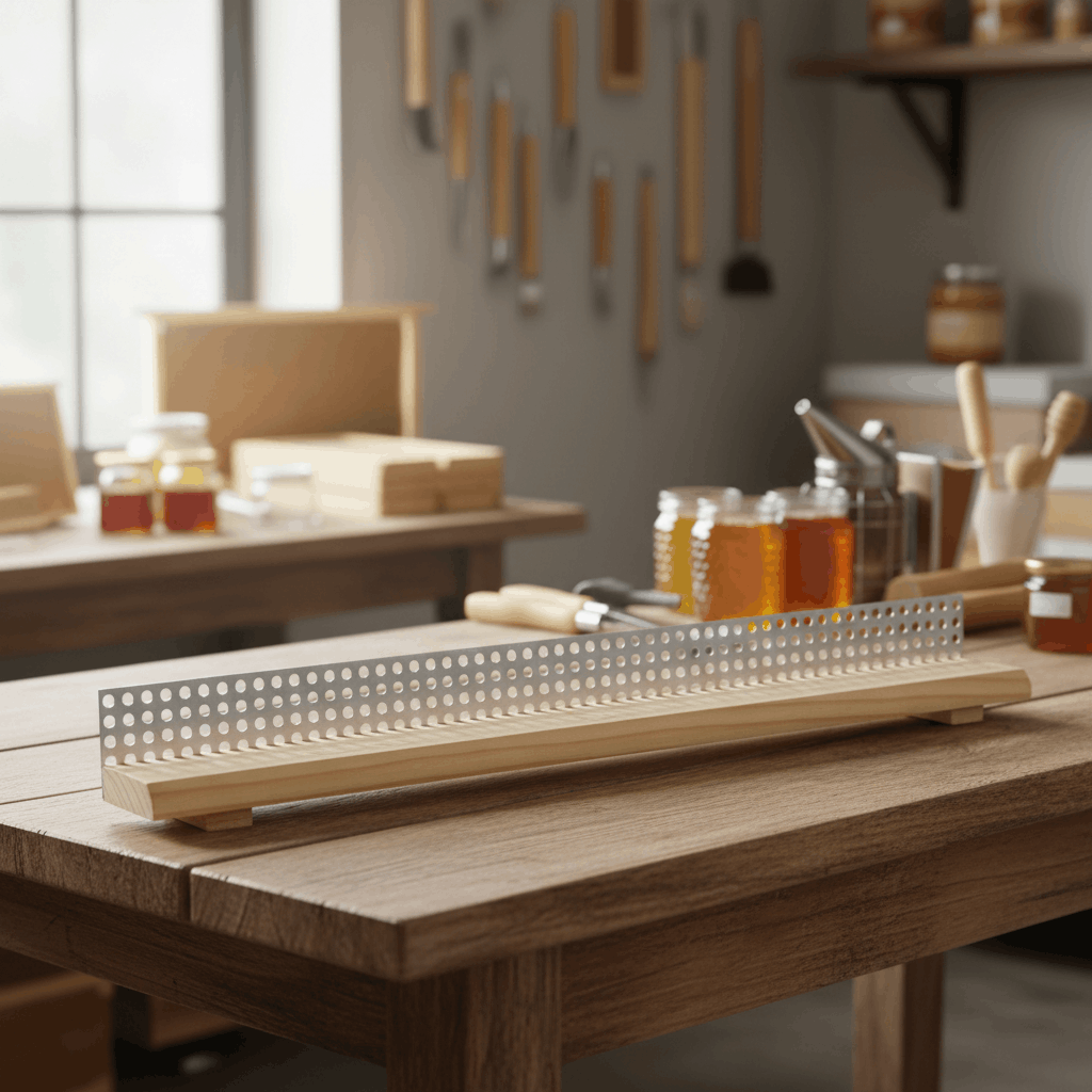 Die Velutina-Sperren sind wie eine letzte Verteidigungslinie um das Eindringen der Asiatischen Hornisse in den Bienenkasten zu verhindern. Dafür ist der Lochdurchmesser von 5,5 mm und eine exakte Ausführung der Bohrungen notwendig. Aufgrund dessen können die Bienen einen Teil des Blütenpollens beim Hindurchschlüpfen verlieren, weshalb wir regelmäßige Kontrollen empfehlen.
