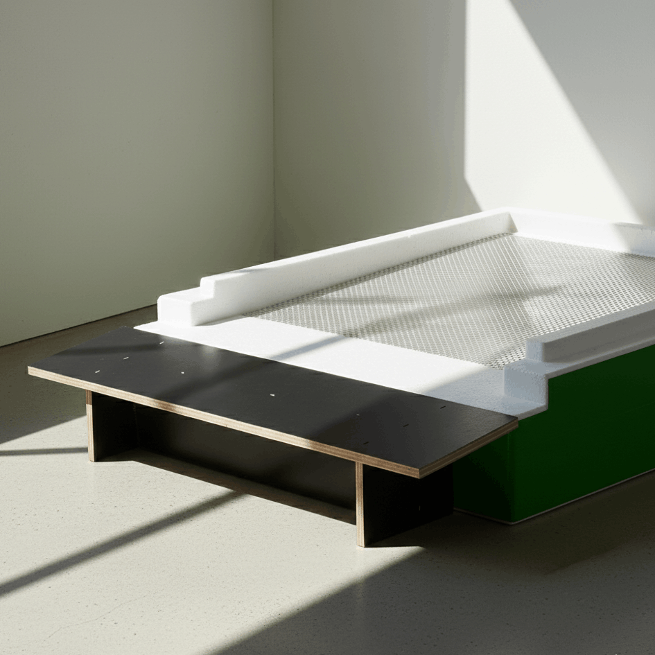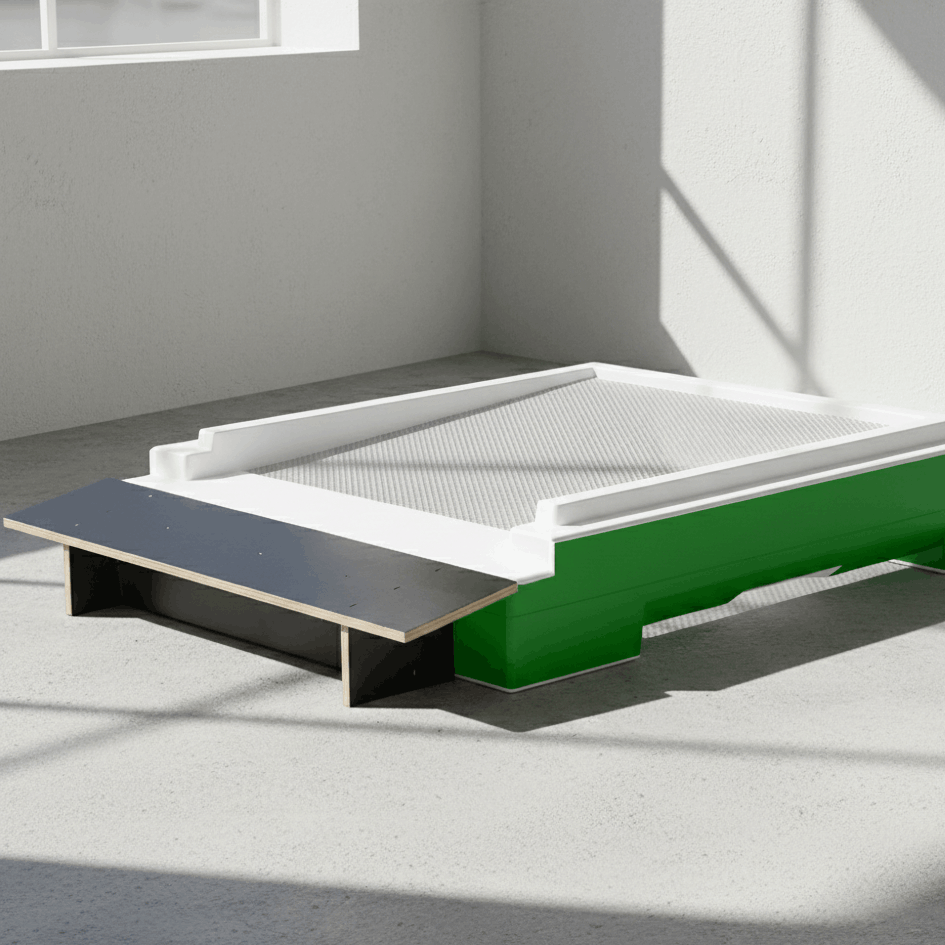 aus Holz, wird vor dem Flachboden platziert und ergibt so eine zusätzliche Anflugfläche von 10 cm