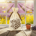 Beutel aus ungebleichter Baumwolle mit Aufdruck „Wabe“ und Kordel-Zugverschluss