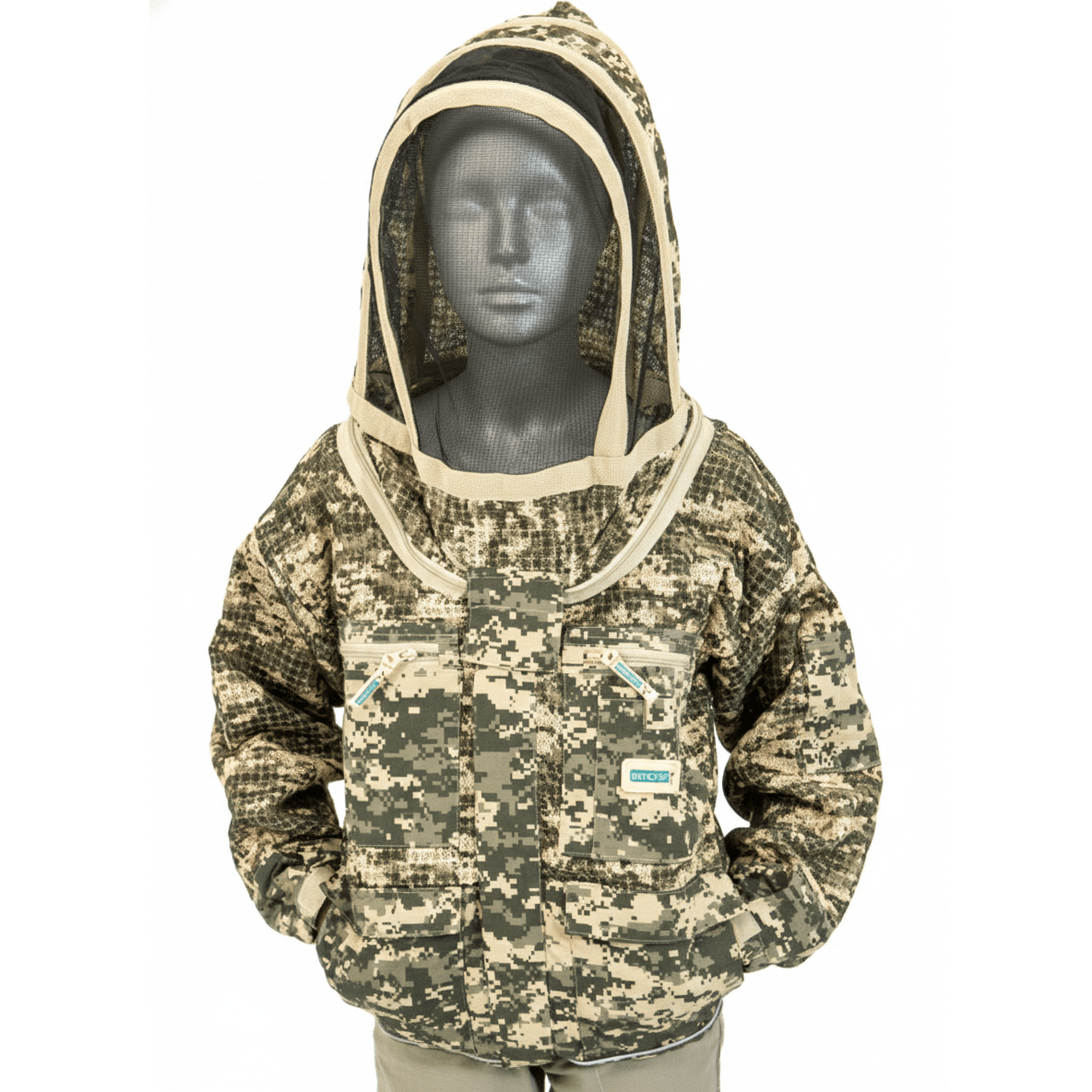 Die coolen Schutzhemden für unsere Imker-Kids. Sicher, luftig und leicht dank ventilierender BienoAir® Machart. Hergestellt in drei Lagen und voll waschbar. Angenehmer, leichter Tragekomfort gepaart mit praktischen Details wie Reflektierstreifen, verdecktem Reißverschluss, fünf verschließbaren Taschen, einstellbaren Gummibündchen an den Ärmeln sowie die sich selbst aufstellende Imkerhaube mit viel Platz für viel Bewegung