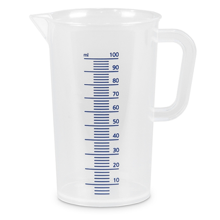 aus durchsichtigem Kunststoff mit Ausgießtülle und erhabener Messskala in 2 ml Schritten