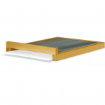 zum Einschub von hinten in den Hochboden zur Erleichterung der Varroakontrolle. Nach der Behandlung empfehlen wir die Schieblade wieder zu entfernen, damit die Vorteile des Hochbodens wie Trommelraum und Luftzirkulation zum Tragen kommen