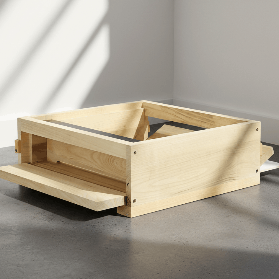 - geschützter Anflugbereich mit Verschlussklappe, nach unten geklappt dient dies auch als Anflugbrett