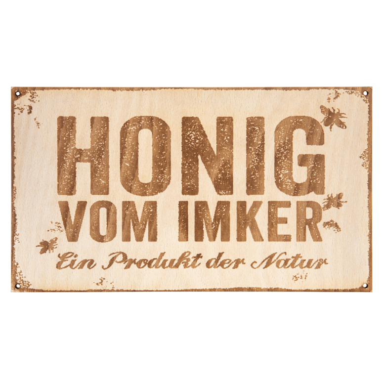 aus Holz mit 4 Löchern zur Befestigung, Bild und Text sind gelasert, Materialstärke 4 mm