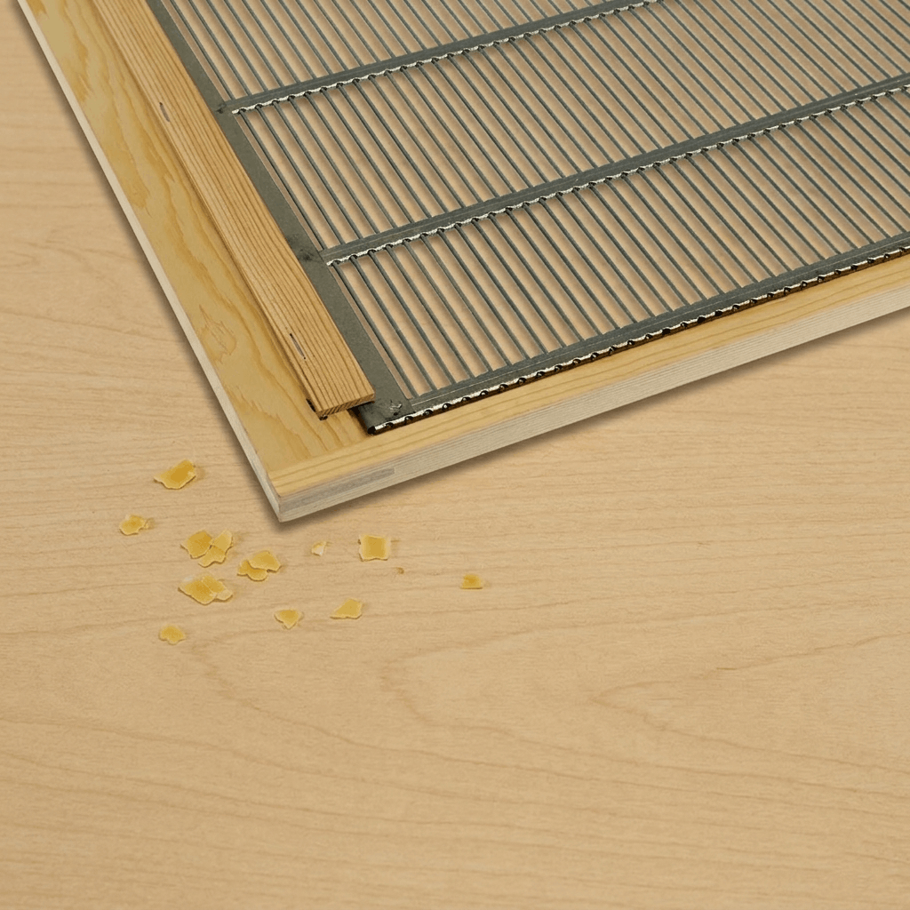 im Holzrahmen genietet und mit zwei Leisten vor Verrutschen gesichert