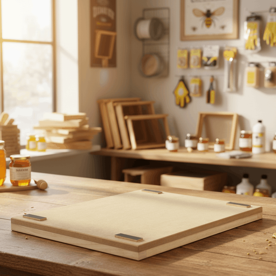 MDF-Deckel mit Rutschleisten und innenseitigem Hohlraum zur Einlage einer Dämmplatte von 465 x 365 mm, bitte separat mitbestellen
