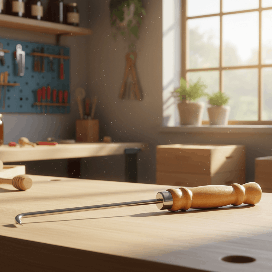 aus Edelstahl mit abgekröpfter Spitze und stabilem Holzgriff.