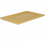 Vollholz-Bodendämmbrett mit Lüftungsschlitzen in Lamellenform, diese sind in einem 45° Winkel angeordnet, sorgen für eine Luftzirkulation im Bienenvolk und verhindern Lichteinfall. Der Einsatz erfolgt alternativ zum Bodenschieber zur Be- und Entlüftung