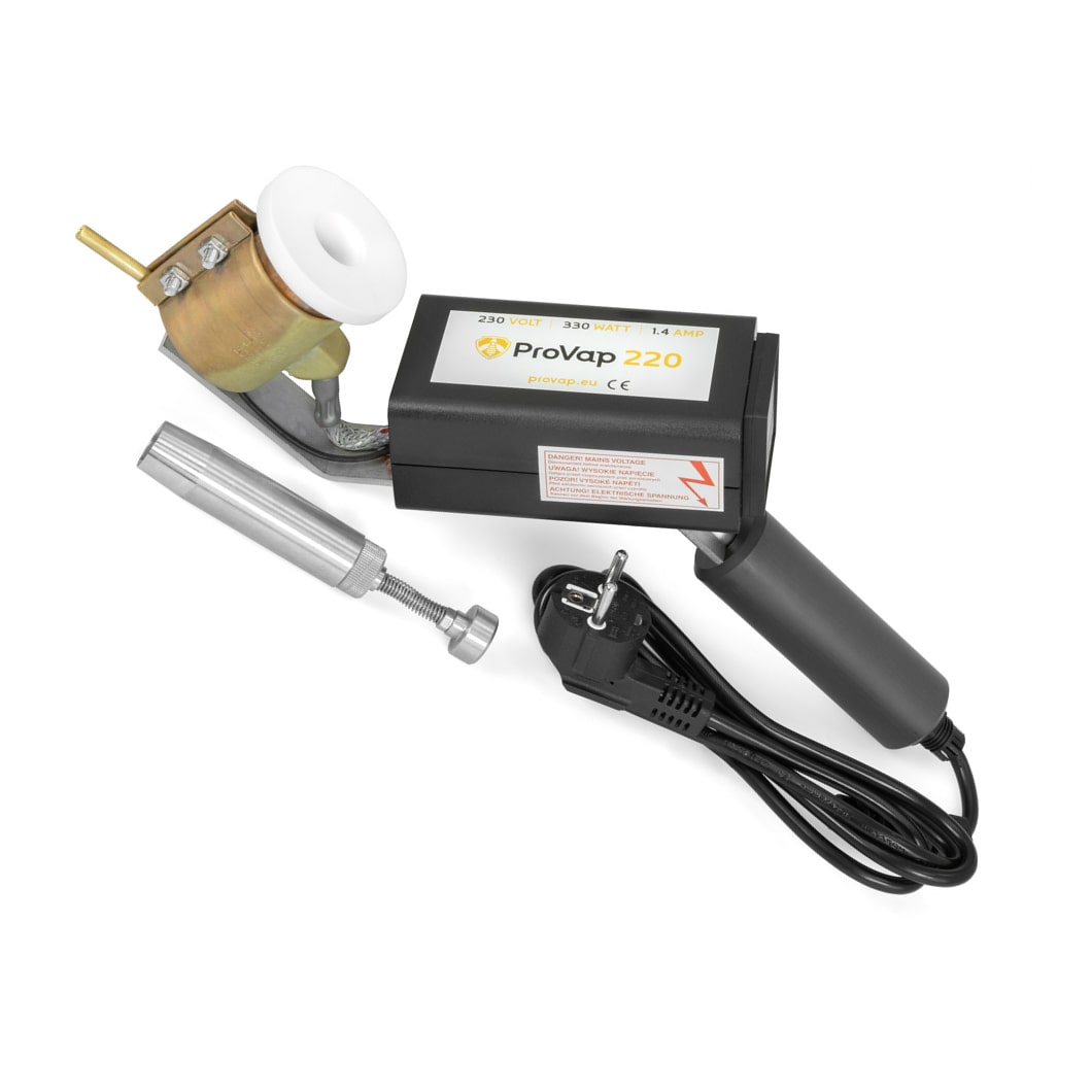 Verdampfer für die Anwendung im Flugloch mit Oxalsäure. Konstante Temperatur durch PID-Thermostat. Betrieb mit 230 V / 330 W an Steckdose, Generator oder mit Wechselstromrichter an 12 V Batterie, Gesamtlänge des Gerätes ca. 39 cm, Ø Verdampferröhre 6 mm, Kabellänge ca. 1,6 m