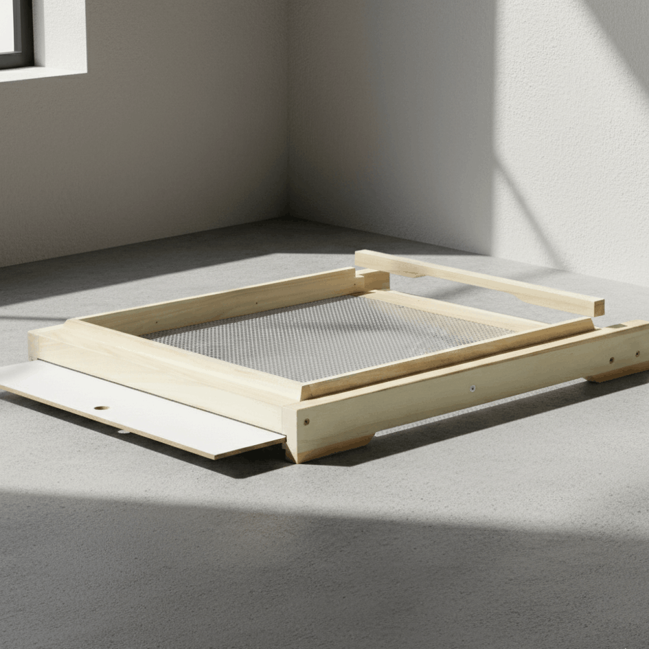 - Bodenschieber zur Varroakontrolle, wird von hinten unter das Gitter geschoben