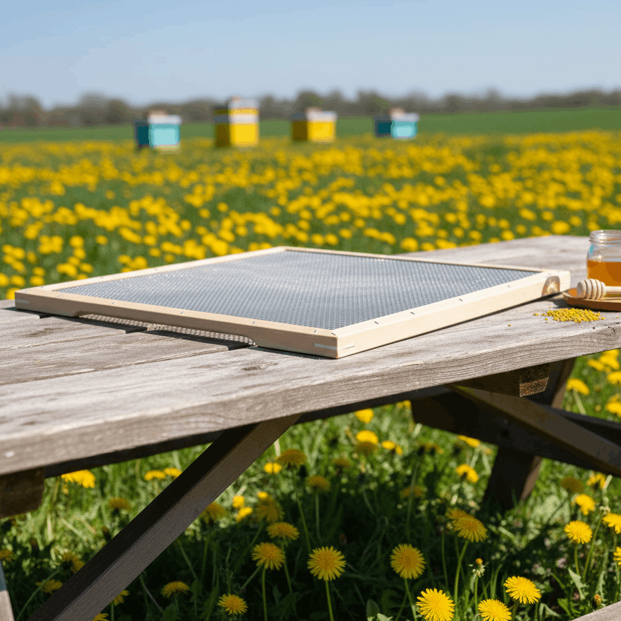- Futtergitter: Futterteig wird auf das Gitter aufgelegt und so den Bienen zugänglich gemacht