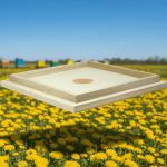 für bis zu 3 Liter Flüssigfutter. Der Notfütterer wird zwischen oberster Zarge und Deckel platziert und ist ausgestattet mit einem mittlerem Siebeinsatz aus Zinnbronze.