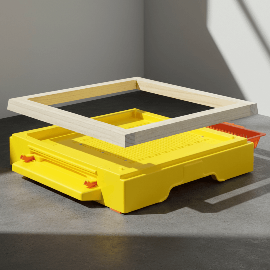 - multifunktionaler Kunststoffboden mit Holzadapter, nutzbar als Pollenboden, Varroaboden oder Sanitärboden