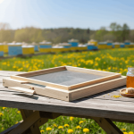 Zum Aufsatz auf die Zargen, damit die Bienenvölker beim Wandern nicht verbrausen. Mit Edelstahl Lüftungsgitter und Falz. Zusätzlich mit verschließbarem Flugloch, zum Nutzen als Zwischenboden mit Rüsselkontakt.