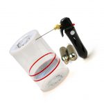 bestehend aus einem Kunststoff-Zylinder mit Siebeinsatz und zwei Kunststoff-Deckeln, einem CO2 Spender und 2 x 16 g CO2 Standardpatronen, für jeweils ca. 6 Tests