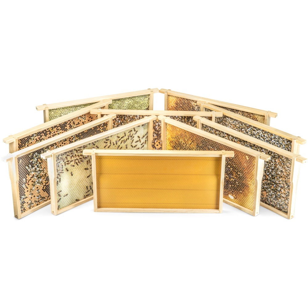 Set von 10 Rähmchen Zander von 477 x 220 mm mit insgesamt 20 verschiedenen Lehr- und Schaumotiven. Ideal zur Präsentation in Schulen, Imkerkursen oder auf dem Wochenmarkt.